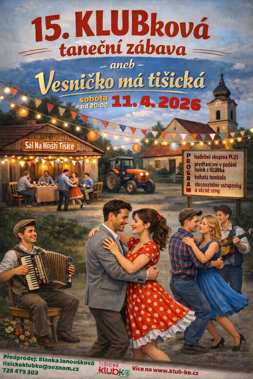 TIŠICKÉ KLUBko srdečně zve všechny sousedky a sousedy na jarní taneční zábavu s nezapomenutelným tématem inspirovaným legendární českou komedií Vesničko má středisková!